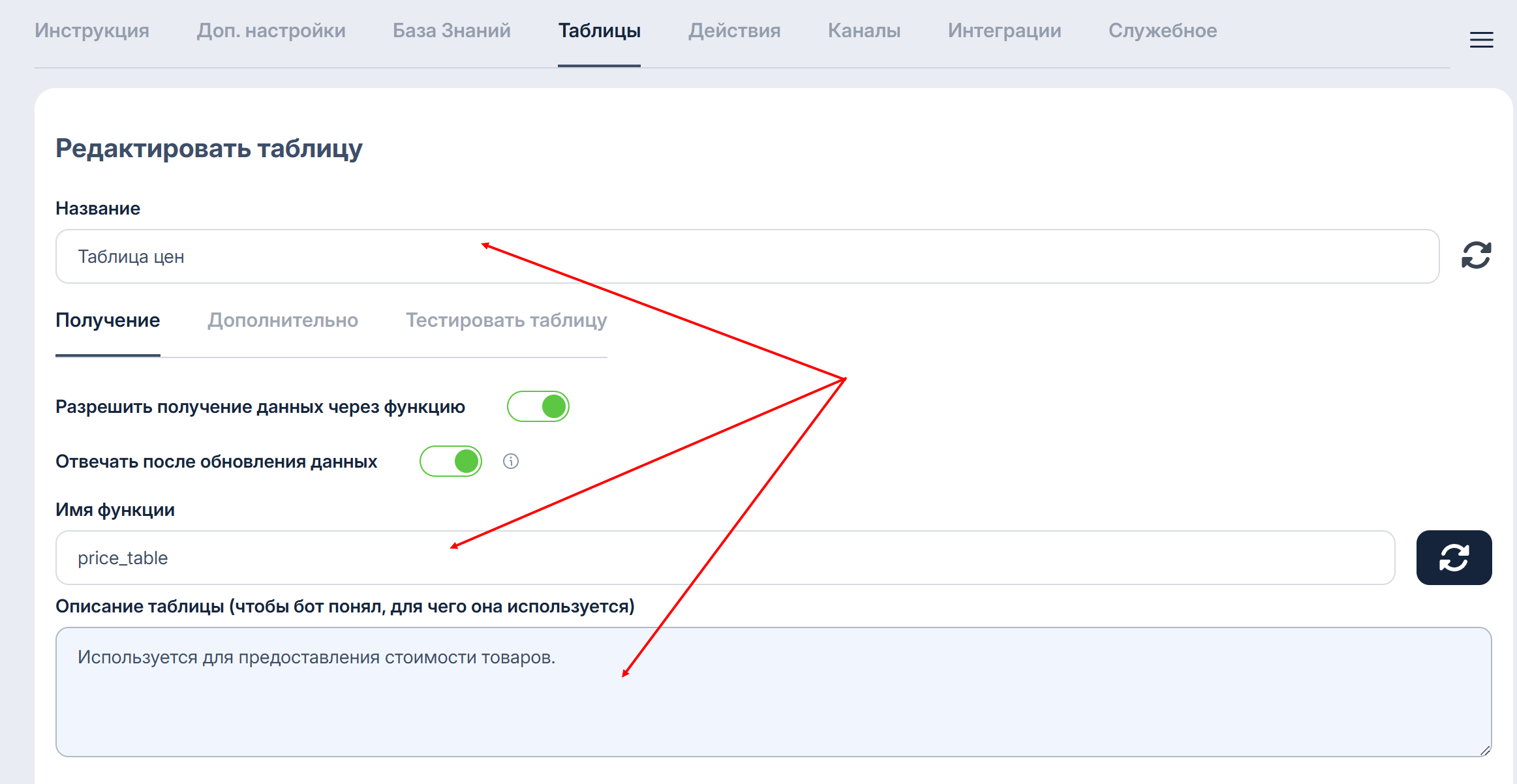 > Например, для таблицы, которая является прайсом, и который Савви должен прочитывать для ответов клиенту название функции и описание могут звучать так: